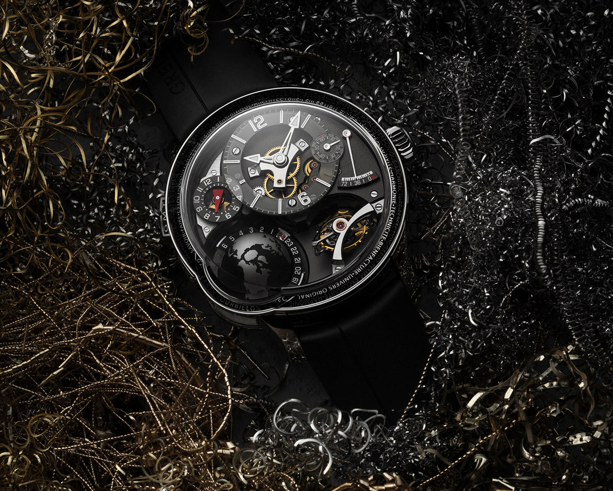The Earth turns and Greubel Forsey keeps moving. Today, the Atelier unveils the third terrestrial interpretation of its GMT Earth. This unique and now even more modern creation features a new titanium case and is adorned with an even more elegant intense black finish : limited edition of 11 pieces.