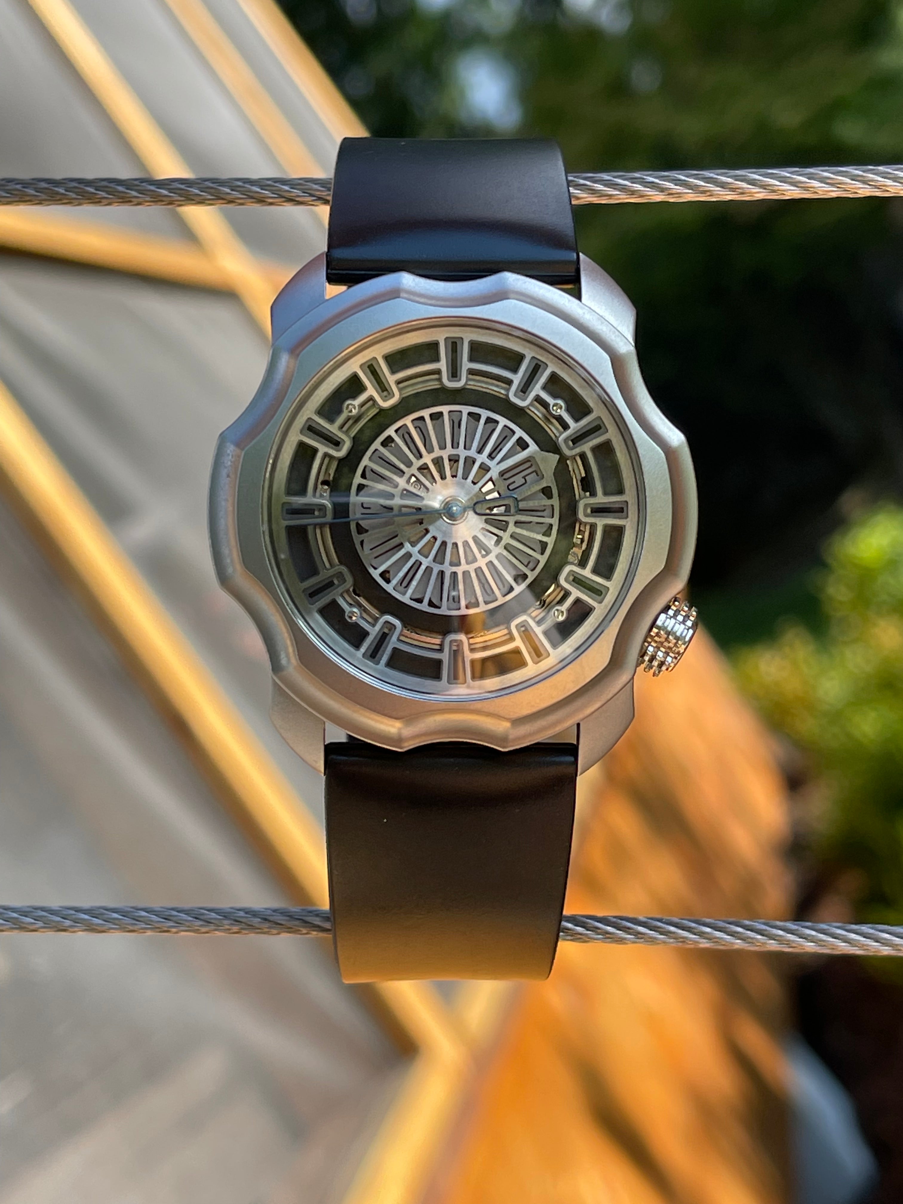 Now, somewhere in the aughts, I must have let Stepan know about this watch I acquired by Hebdomas. It was a very unique wandering jump hour mechanism that showcased the time in the most minimal way. After a few pints, he suggested I give it to him, and one day he’ll create a watch from the movement for my son, Atlas.