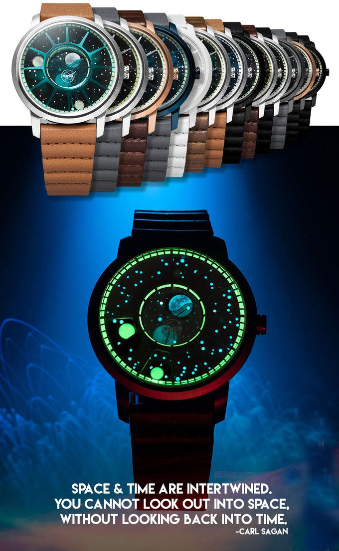 The AmeriQuartz Moonphase version of the Apollo 15 tracks the current phase of the moon through its 29.5 day cycle.